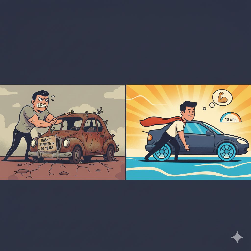 What I’ve noticed is that the hardest part is getting the engine to start. Cold engines are brutal. The first thing to accept is that it’s going to be hard, and results may not come fast, but one of the biggest momentum killers is stopping halfway and starting over.